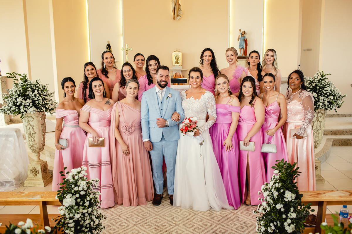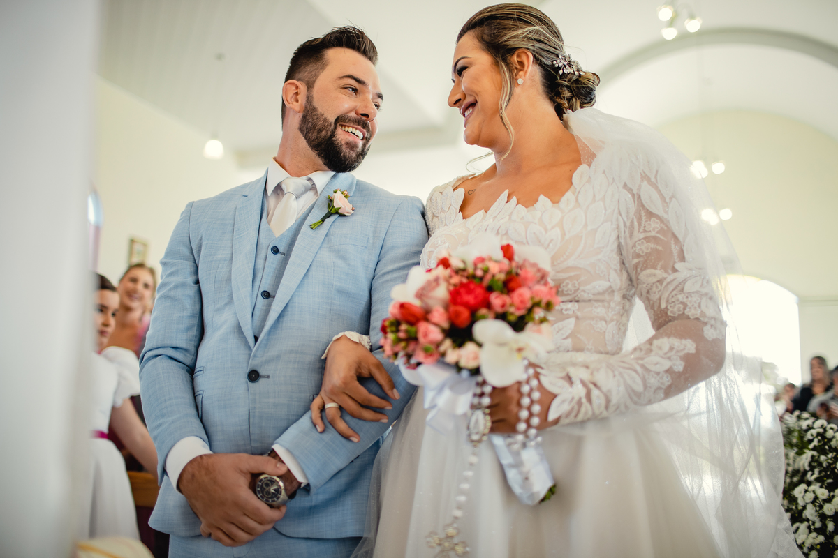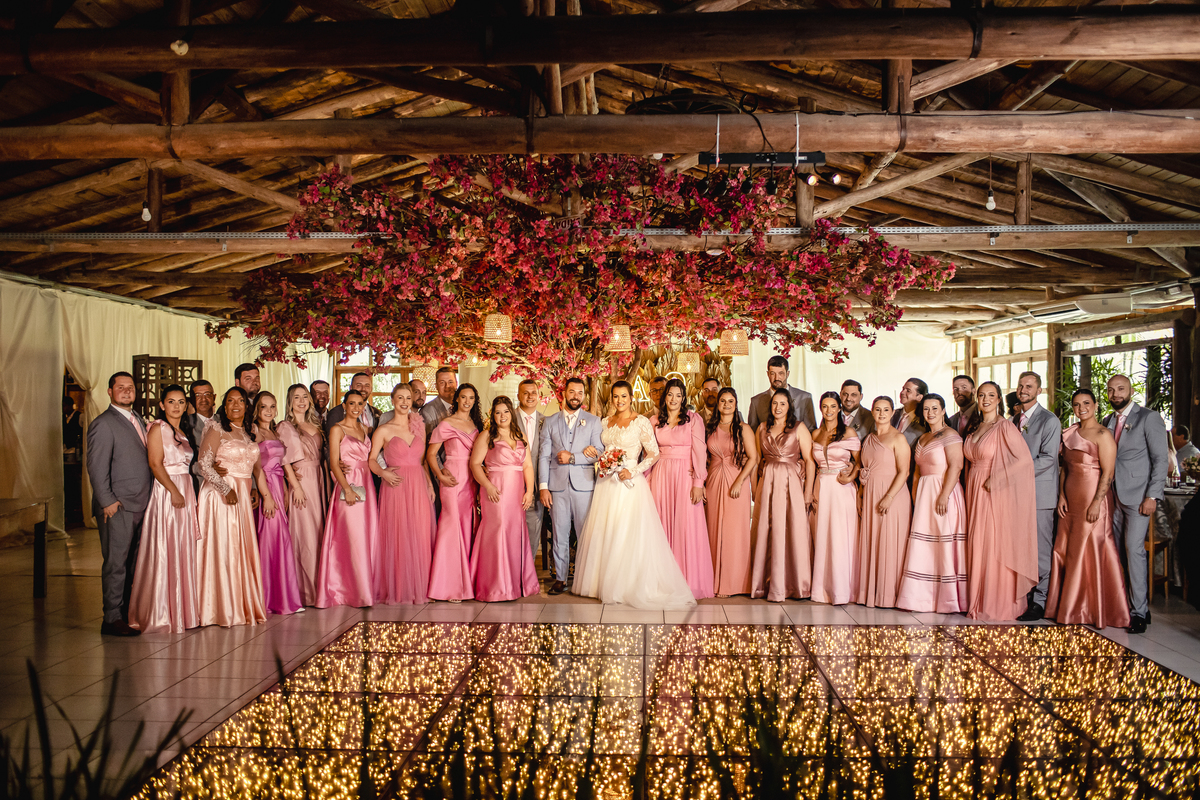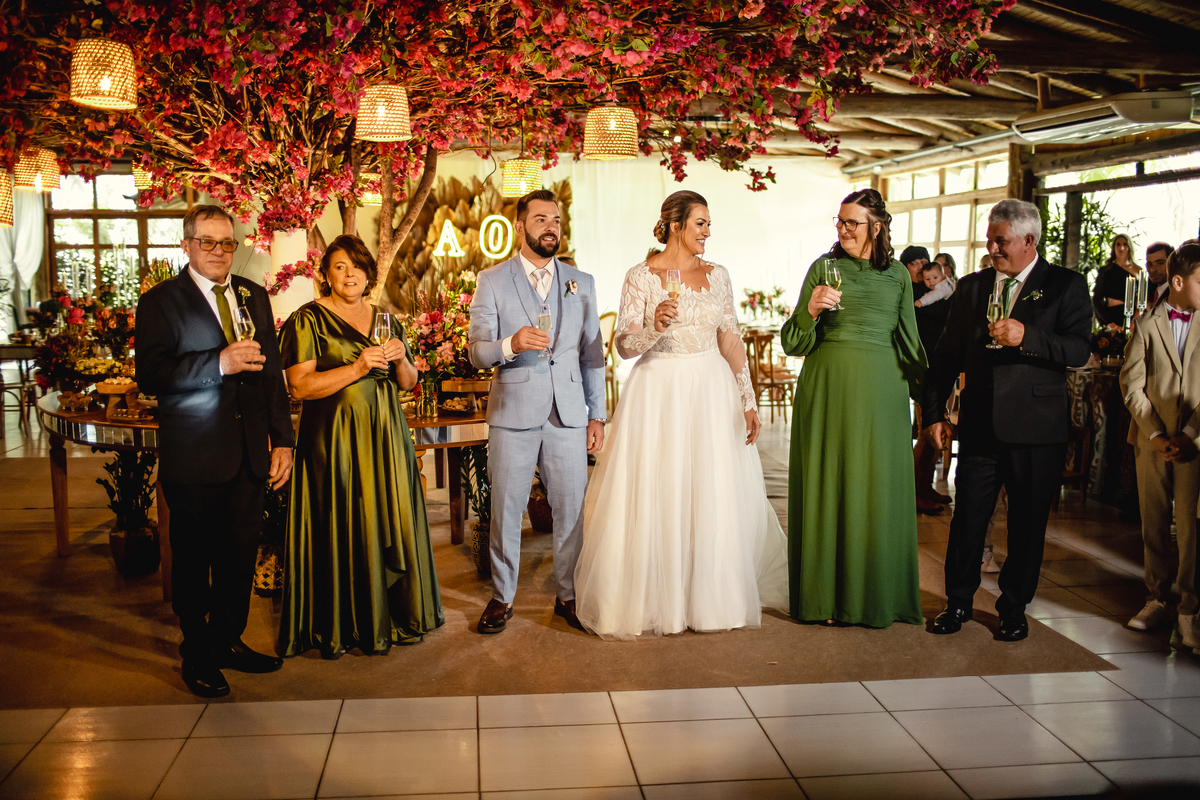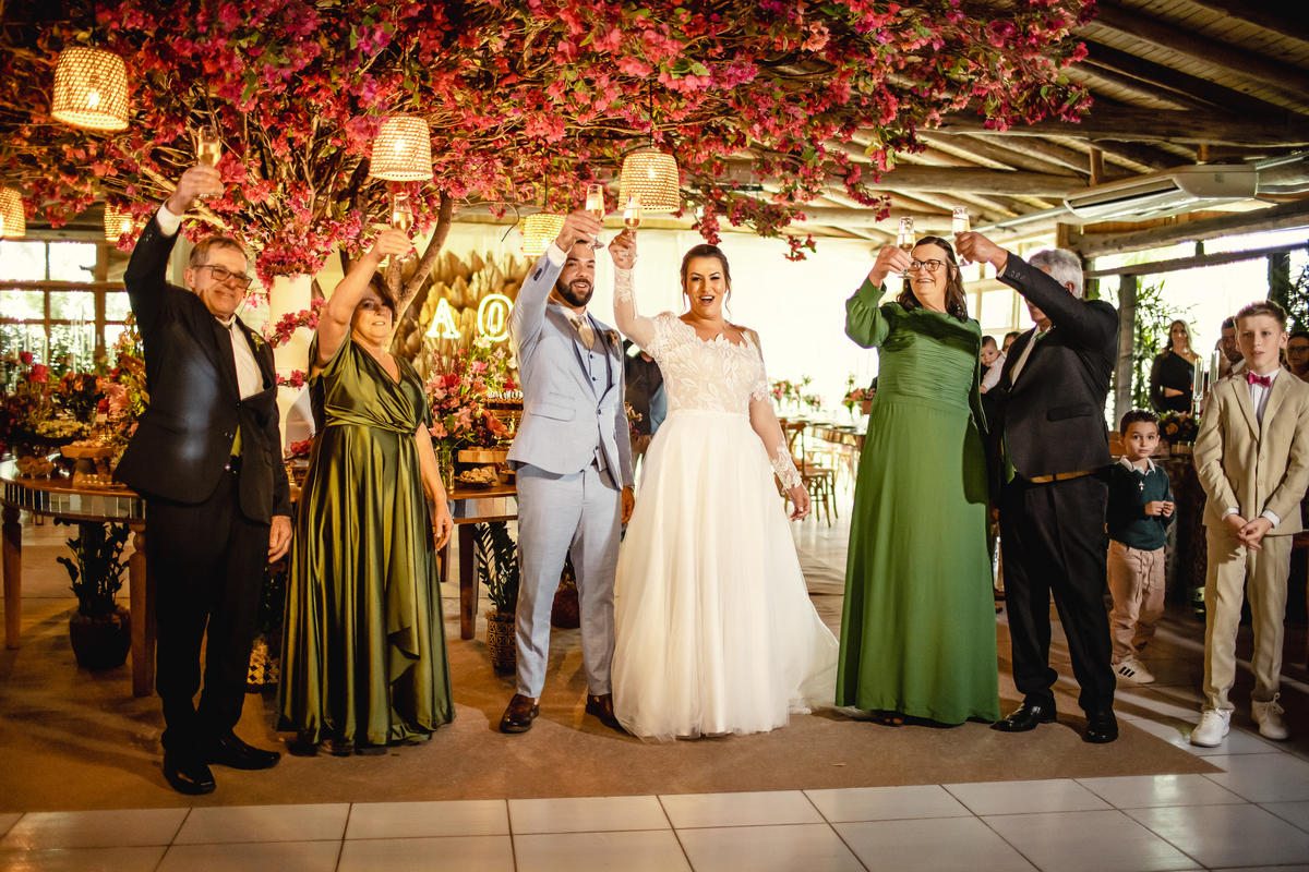 O casamento da Aline e do Oscar aconteceu na Igreja Matriz de Orleans, em Santa Catarina, bem pertinho da Serra do Rio do Rastro, um cenário que deixa tudo ainda mais especial. E a festa aconteceu no
