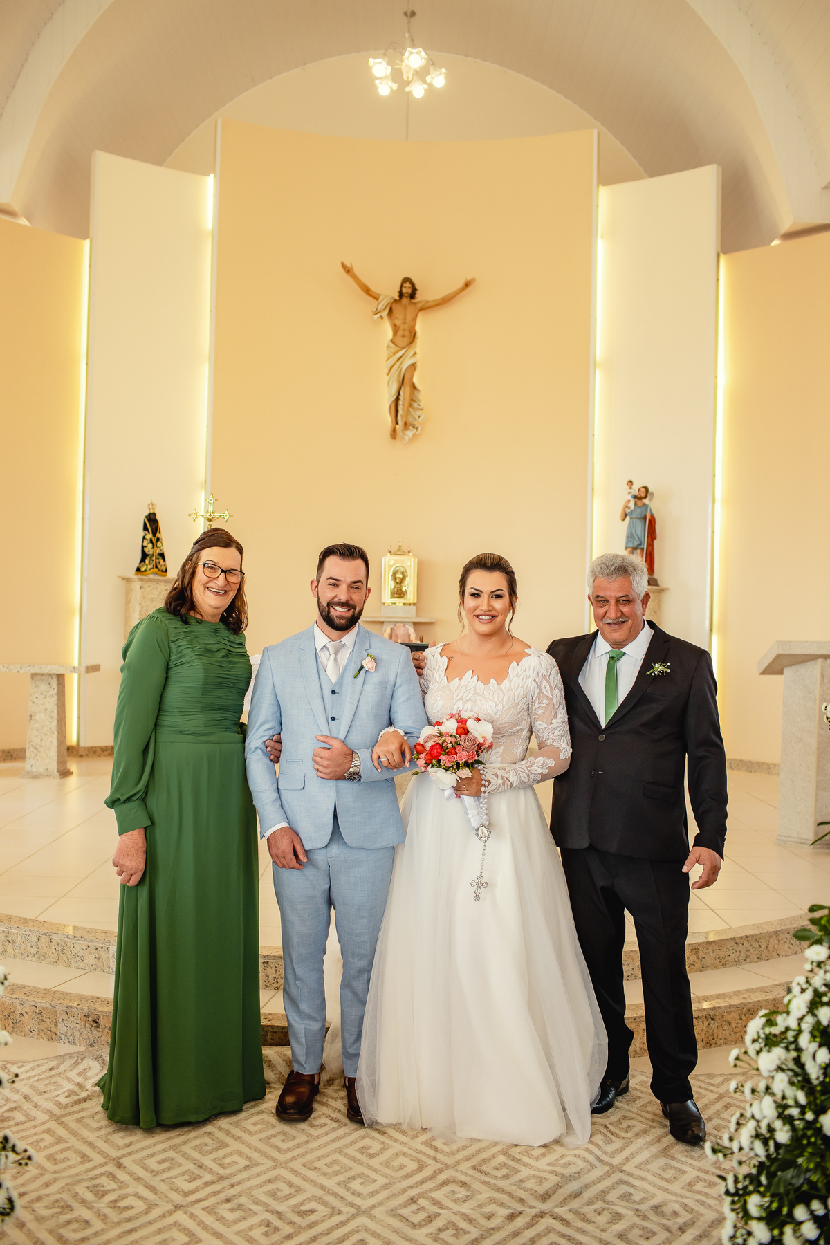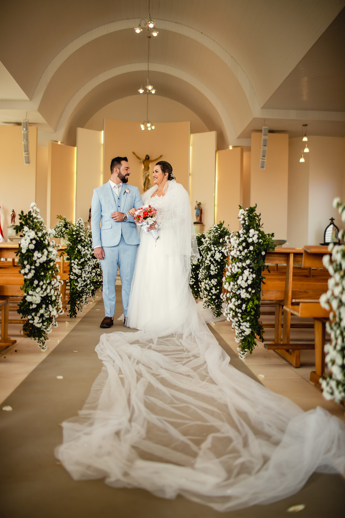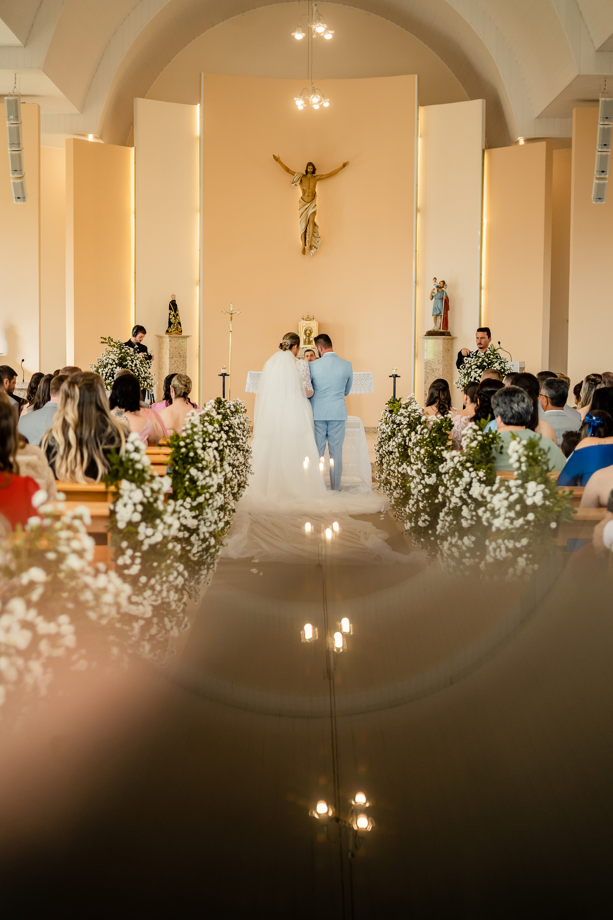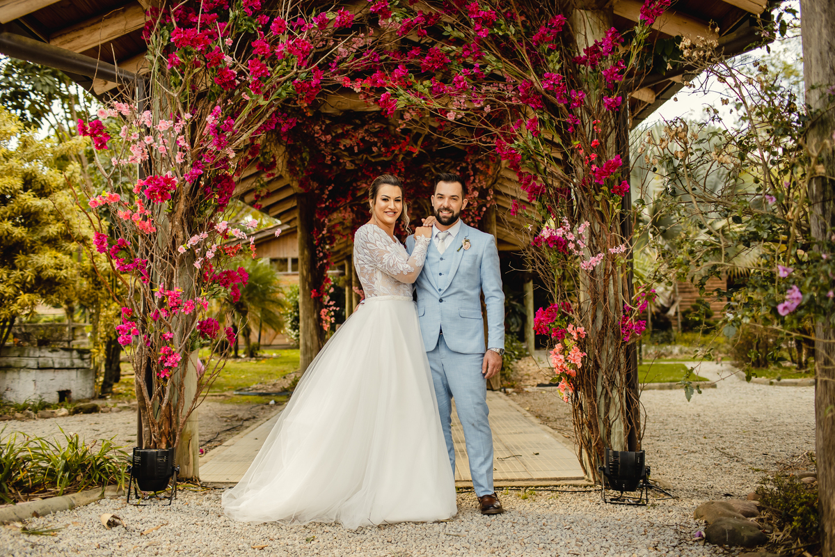 O casamento da Aline e do Oscar aconteceu na Igreja Matriz de Orleans, em Santa Catarina, bem pertinho da Serra do Rio do Rastro, um cenário que deixa tudo ainda mais especial. E a festa aconteceu no